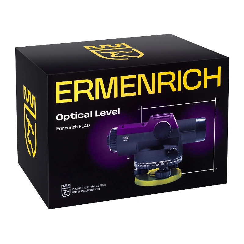 Ermenrich PL40 - это оптический нивелир для точного измерения рельефа, разницы высот и расстояний. В нём стоит маятниковый компенсатор с магнитным демпфером, который хорошо убирает вибрации и стабильнее моделей с воздушным демпфированием. Это позволяет прибору показывать стабильные данные даже рядом со строительной техникой или при сильном ветре.