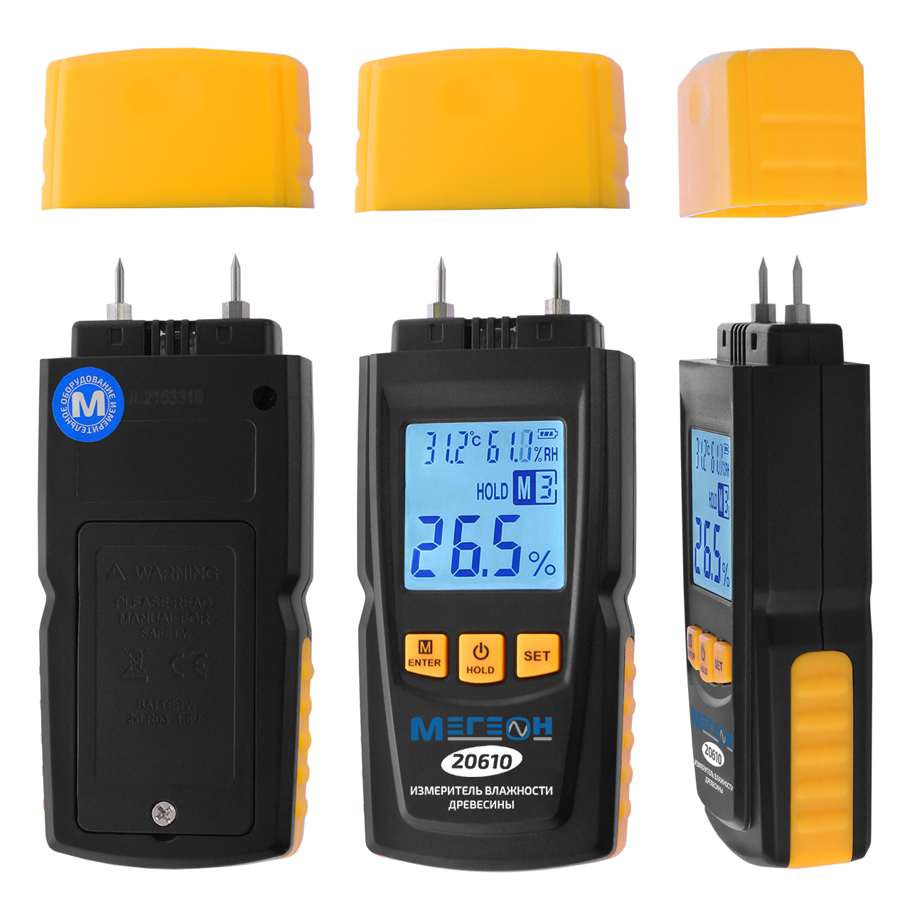 Прибор для проверки процентного влагосодержания в изделиях из древесного сырья. Большой ЖК- дисплей. Для предотвращения травмирования измерительными иглами предусмотрен защитный колпачок. Диапазон измерения влажности 5 ... 70%
