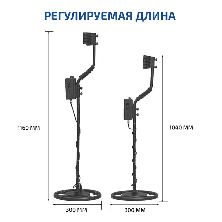 МЕГЕОН 45014 оснащён поисковой катушкой диаметром 30 см, которая обеспечивает высокую точность обнаружения объектов и устойчивость к влаге, что делает её надёжным инструментом в любых погодных условиях. Регулируемая длина штанги позволяет адаптировать устройство под рост пользователя, обеспечивая максимальный комфорт во время работы. Металлодетектор укомплектован ярким ЖК-дисплеем, который отображает всю необходимую информацию, включая тип металла и глубину залегания объекта. Для пользователя предусмотрены звуковая и визуальная сигнализации, которые упрощают процесс поиска и повышают точность идентификации.