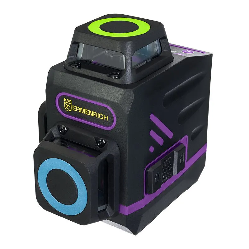 Лазерный уровень Ermenrich PRO LV60 — это точный профессиональный инструмент 3D-класса, который обеспечивает полное покрытие пространства и позволяет выполнять разметку с максимальной точностью. Прибор формирует 12 лазерных линий, что соответствует построению одной горизонтальной и двух вертикальных плоскостей, каждая из которых имеет угол развертки 360°. Такое решение позволяет создавать замкнутую сетку в трёх измерениях, обеспечивая идеальное выравнивание при строительных, монтажных и отделочных работах.