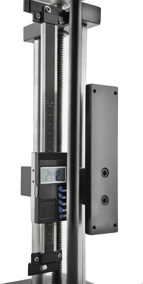 Испытательный стенд сжатия с рычажным механизмом подачи суппорта. В конструкции заложена возможность изменения высоты положения механизма подачи относительно основания. Основные узлы конструкции имеют антикоррозионное покрытие.