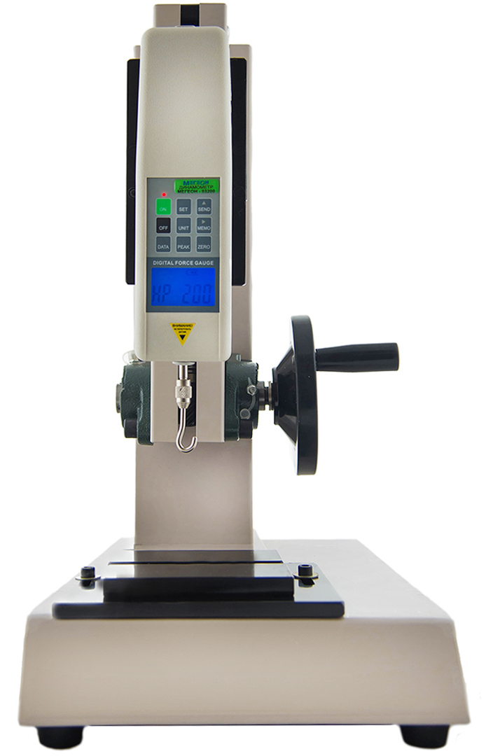 Динамометрический стенд с управлением, которое осуществляется за счет шарико-винтовой пары (ШВП) и линейно направленного привода с прочной закрытой конструкцией. Стенд может работать как с аналоговыми динамометрами МЕГЕОН 04ХХХ, так и с цифровым оборудованием серии МЕГЕОН 03ХХХ и 53ХХХ.