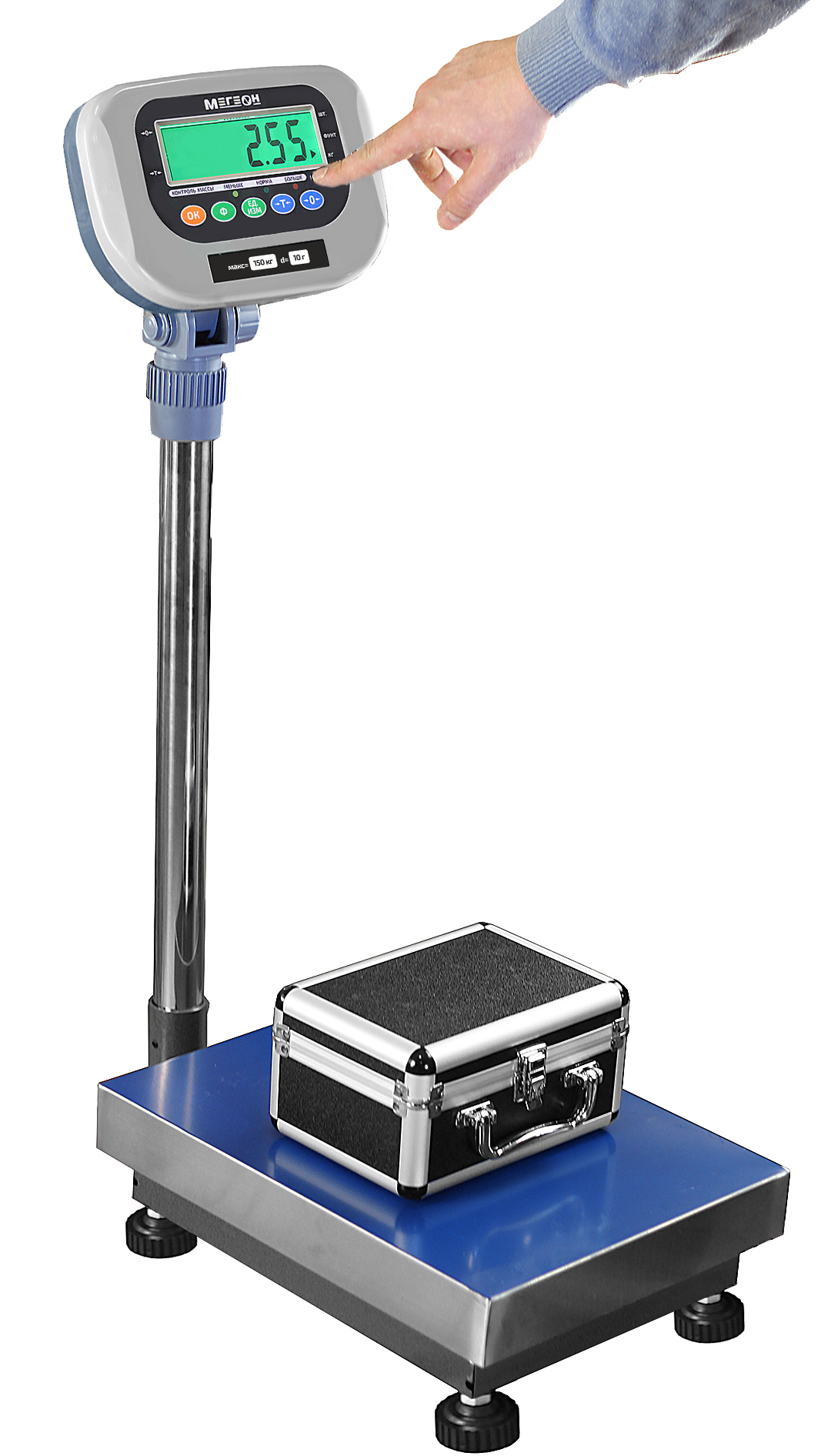 Напольные весы с электронно-цифровым управлением. Диапазон измерения представленной модели позволяет проводить взвешивание продукции от 10 грамм до 150 килограмм. Подсчёт количества объектов на грузовой платформе, их суммирование и количественный учёт. Автономная работа.