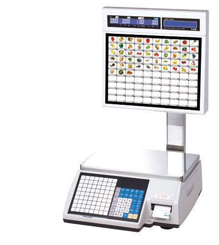CAS CL5000J-IS – весы самообслуживания с печатью этикетки. На стойке расположено 100 клавиш быстрого вызова товаров. А также 2 ЖК дисплея. Память поддерживает от 900 до 8000 PLU в зависимости от количества символов на этикетке. Весы поддерживают 10 типов штрихкодов, до 100 различных полей на этикетке (максимальная длина - до 80 мм). Для редактирования этикетки и программирования весов используется бесплатное программное обеспечение – CL Works.