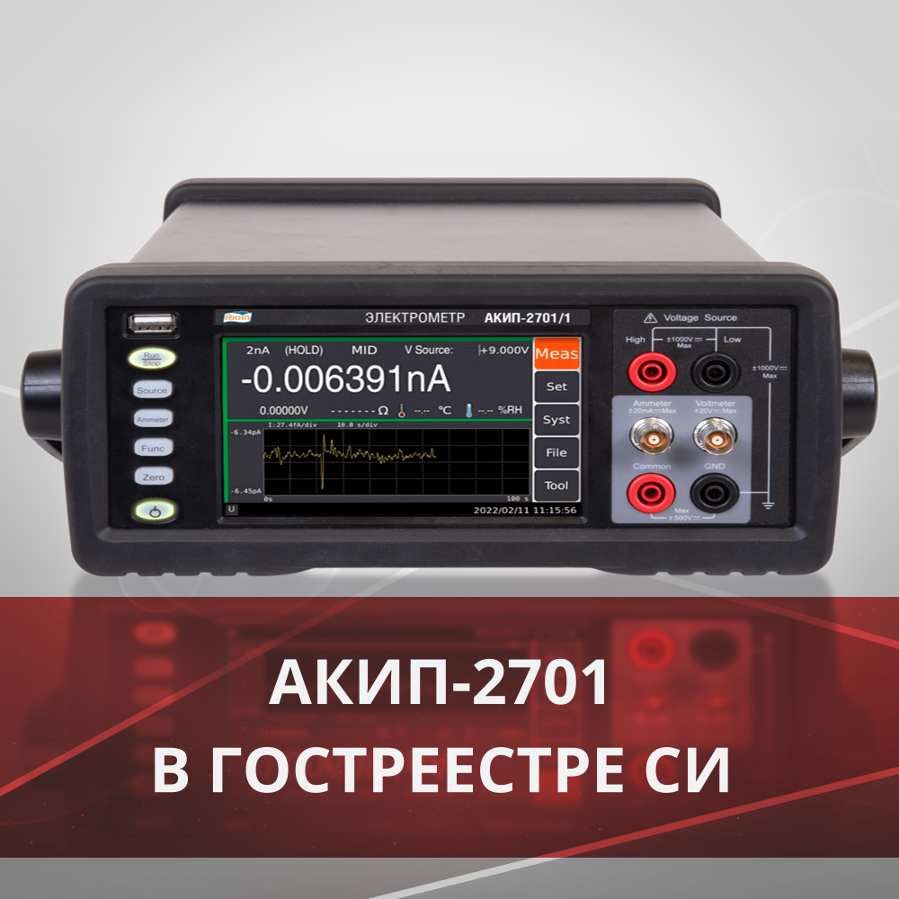 Серия электрометров АКИП-2701 официально утверждена в качестве средств измерений в России (№95274-25) и включена в Госреестр до 2030 года. Эти приборы сочетают высокую чувствительность, широкий диапазон измерений и функциональность, необходимую для самых требовательных лабораторных и производственных задач.
